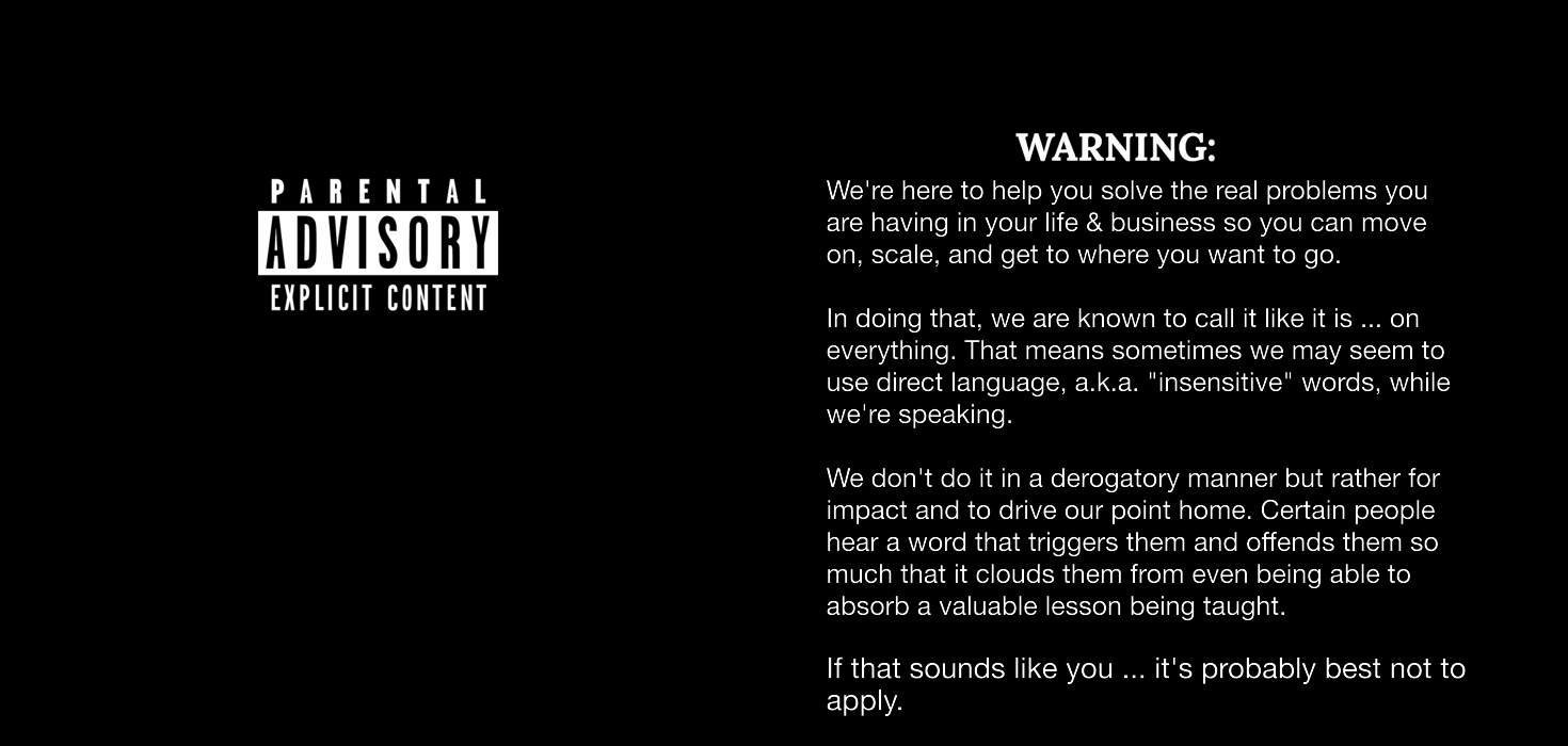 We confidently guarantee that if you show up, do the work, and stay plugged in, you will radically upgrade your business, your mindset, your discipline and your entire life.